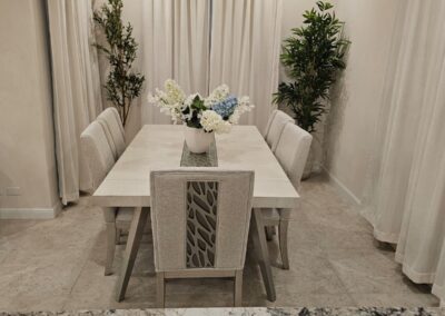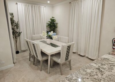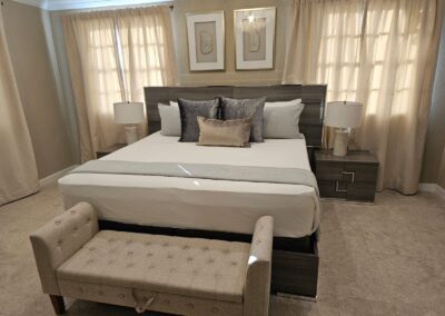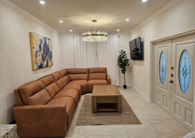 With contemporary furnishings the design is to emulate comfort and luxury. Neutral colors, beautiful chandeliers and modern day appliances help to make this house a Home.